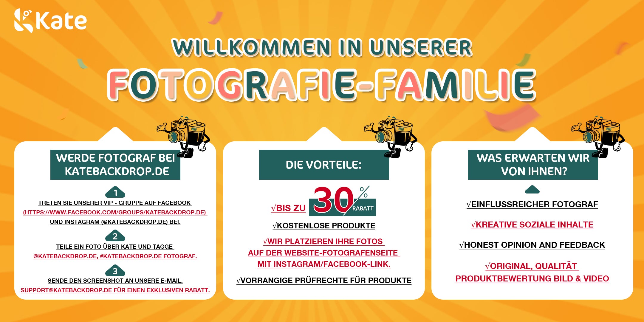 Wenn Sie Interesse an einer lokalen Marketingkooperation haben, senden Sie bitte eine E-Mail an support@katebackdrop.de
